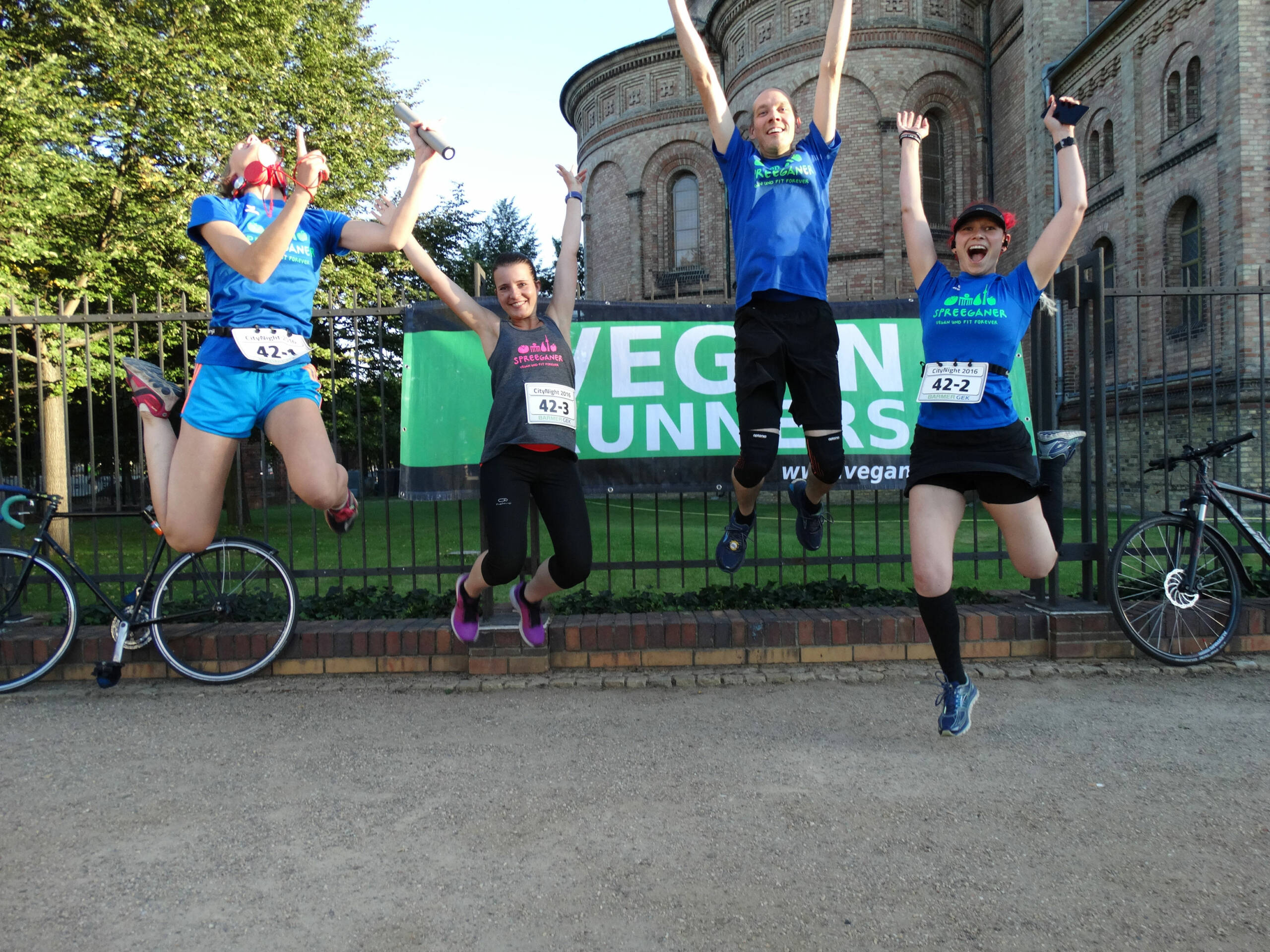 Am frühen Sonntagmorgen schnell ein lockeres Frühstück (vegetarisches Angebot vorhanden), darunter mit einigen Marathonis. Dann kleines Fußmarsch zum Hauptbahnhof, wo dann nur 30 min mit der S‑Bahn nach Leipzig Hbf zu fahren war. In der Bahn waren noch mehrere Läufer zu sehen und bis zum Startort (nahe Red-Bull-Arena vom Fussballklub RB Leipzig) benötigte man mit der Straßenbahn nach einigen Haltestellen. Allgemein sollte man diese einstündige Fahrt vorher genau planen.