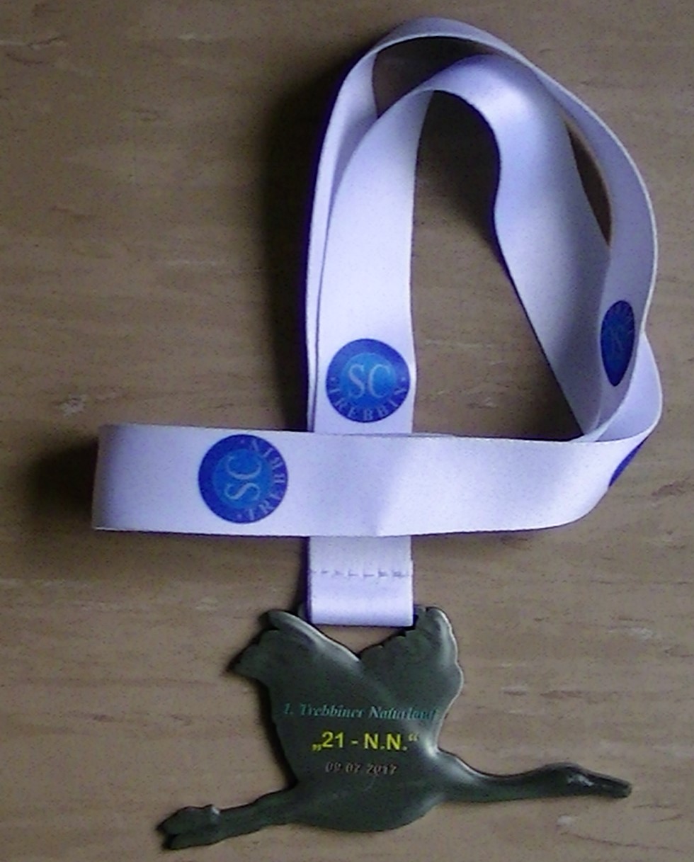 Ich hat­te das Pro­fil der Strecke vorher im Inter­net gese­hen, aber nicht den Boden. Böse Über­raschung: fein­ster märkisch­er Sand auf mehr als der Hälfte der Strecke. Es war nicht nur ein Halb­marathon. Es war ein Cross­lauf. Wald- und Feld­wege und immer wieder Sand. Auf den let­zten acht Kilo­me­tern musste ich ein paar Geh­pausen ein­le­gen. Auf­munternde Worte von Läufern, die an mir vorbeizogen.